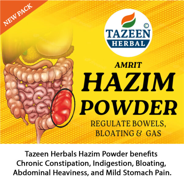 Amrit Hazim Powder is a proprietary herbal digestive formula designed to naturally support healthy digestion and relieve common stomach discomforts. Made from a blend of traditional Ayurvedic and Unani herbs, it works gently to regulate bowel movements, ease bloating, and relieve abdominal heaviness.